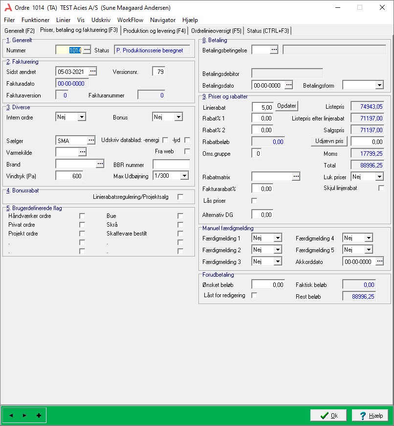 Så længe der ikke er låst for redigering, eller så længe der ikke er registreret et faktisk forudbetalt beløb, vil det ønskede beløb ændres, hver gang tilbud/ordre genberegnes.