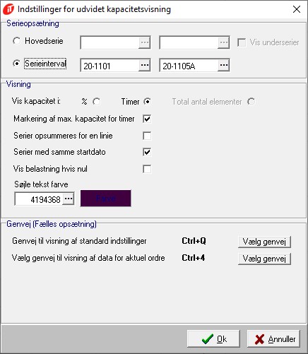 Når kapacitetsoversigten kaldes frem på ordrehovedet, vises den for den/de serier, der er valgt her i Indstillinger.