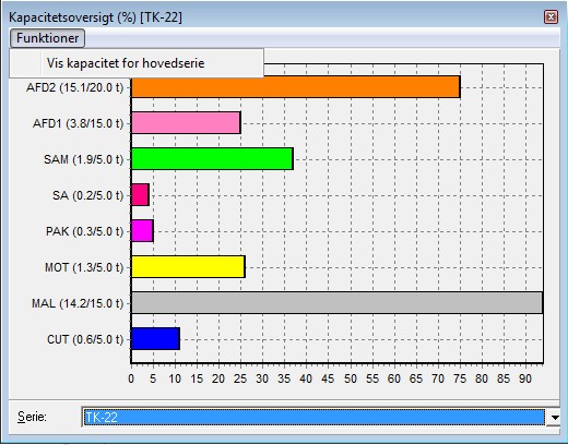 Arbejder man med hovedserier, kan man også få vist kapacitetsoversigten for disse ved at vælge denne visning i "Funktioner".